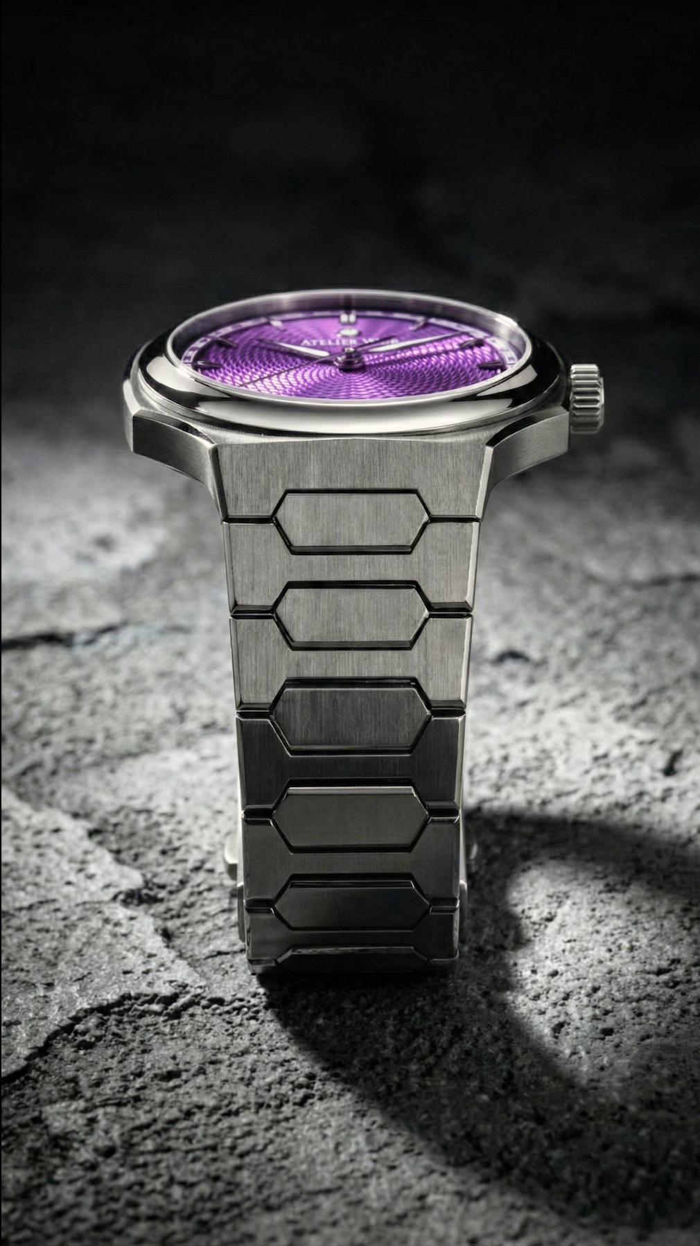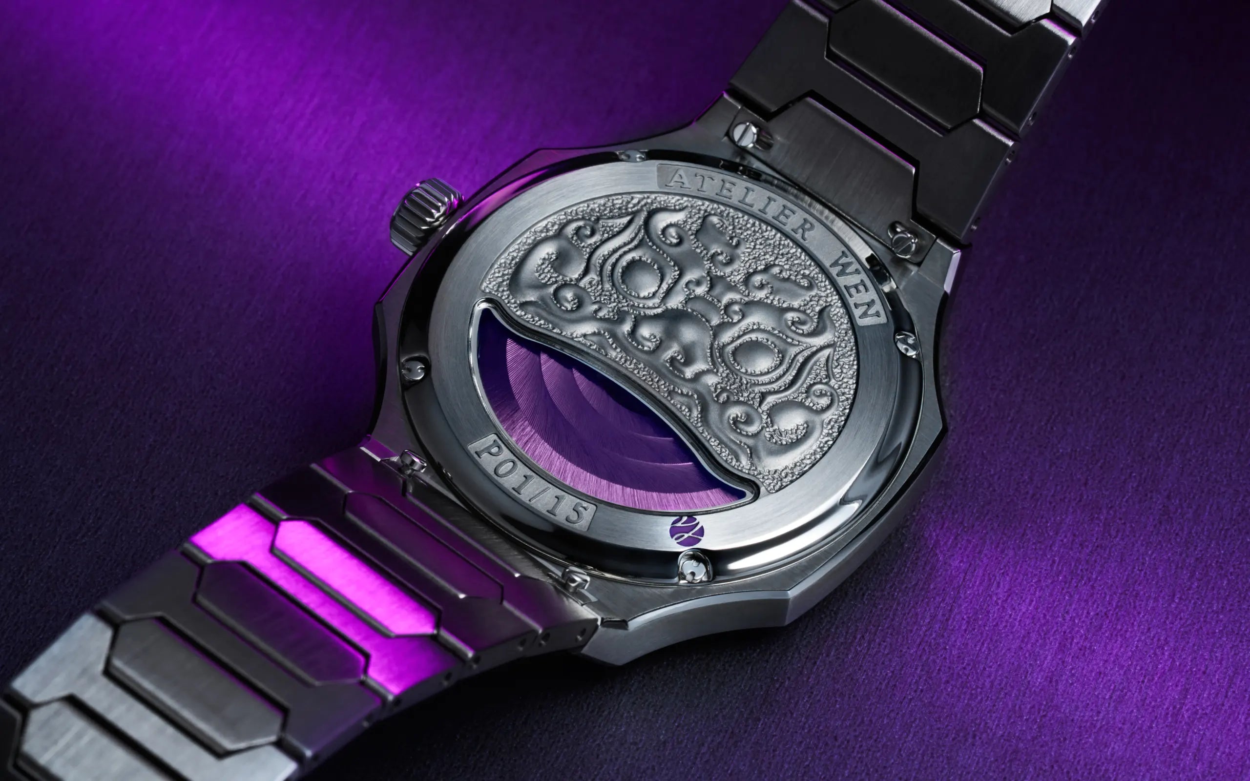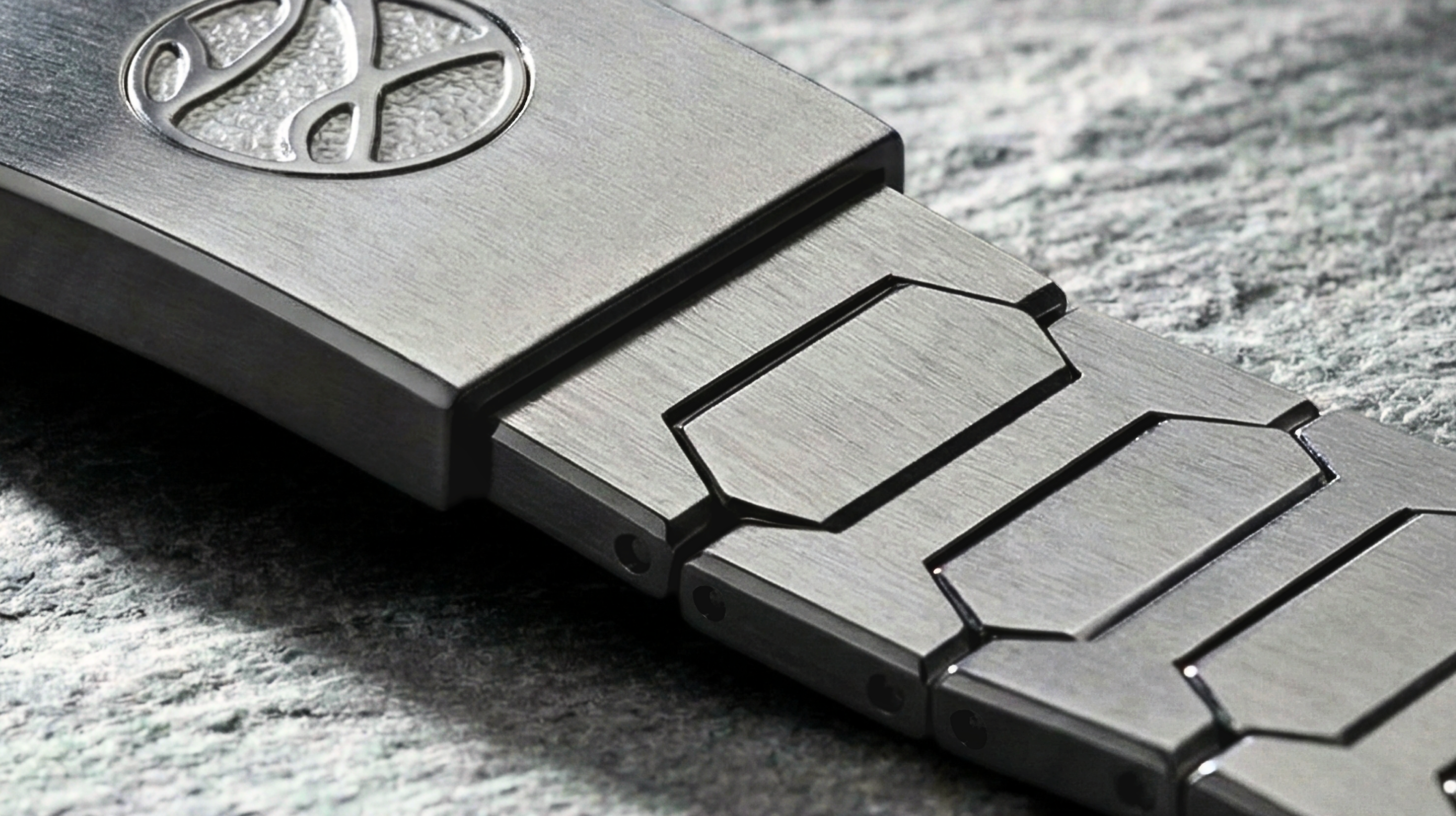Grade 5 titanium was specifically selected due to its ability to take on polish, complementing the material's natural subtlety with the lustre of its chamfers. The material's hardness makes it significantly more challenging to machine and polish than steel, demanding a greater degree of skill and time to achieve its final form. This unique characteristic has led to it being sought after for its prestige and exclusivity in the watch industry.